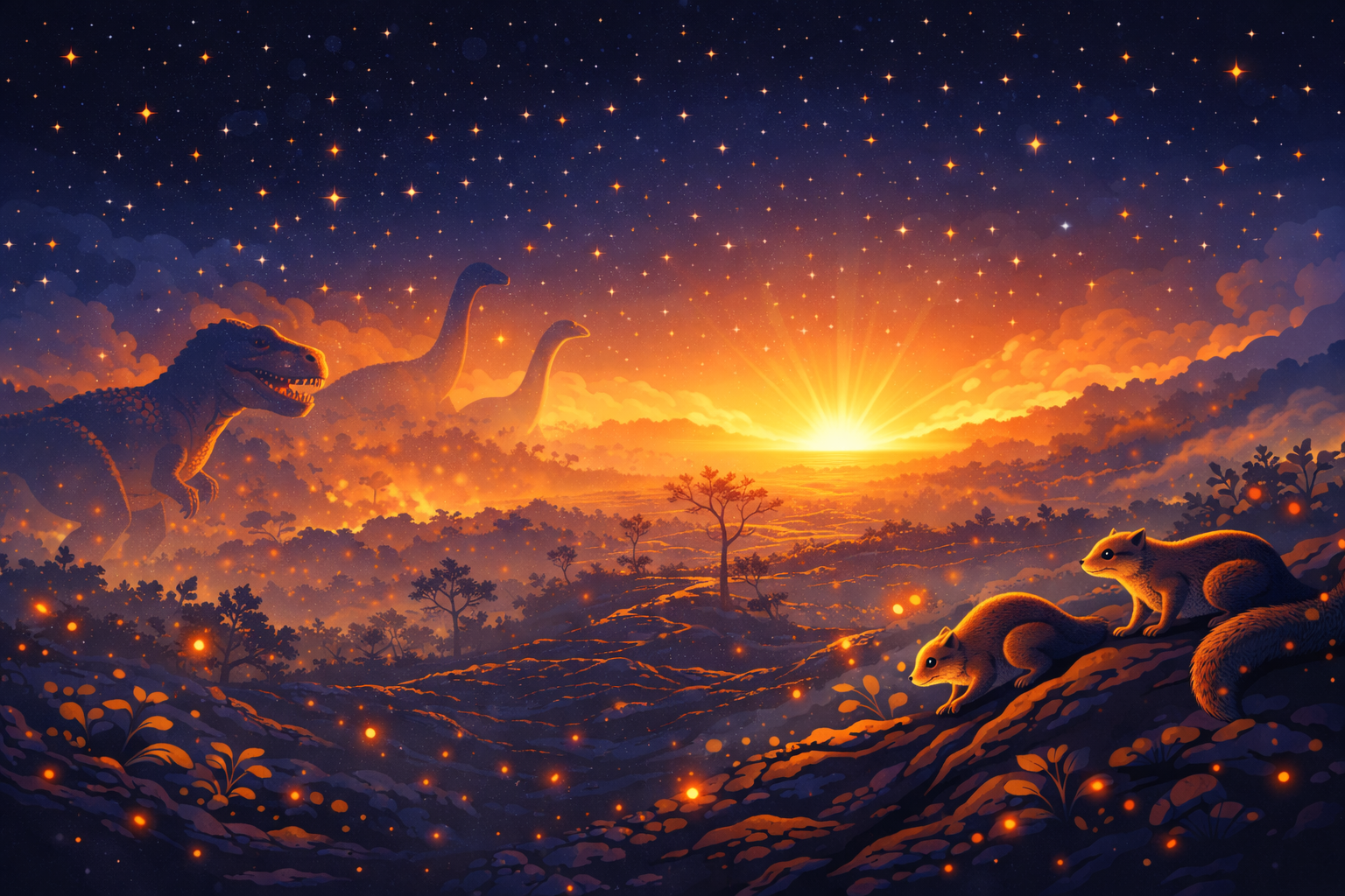 Thankfully, that 75% included all non-avian dinosaurs, the main source of fear for our rodent ancestors. These hardy squirrel-like mammals had an extremely flexible diet, allowing them to evolve to survive on the little food that was available.