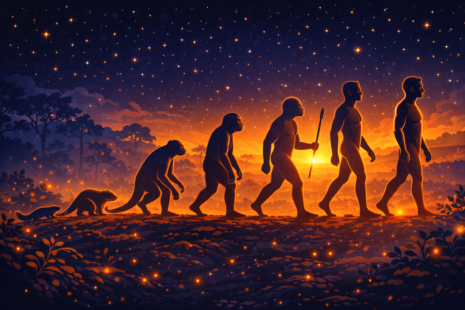 The absence of most of their main predators opened the pathway for evolution to run wild, going from early mammals, to primates, to, to hominins and finally the Homo sapiens sapiens we know today. Not being forced to hide up in trees, they had the time and capacity to develop bipedalism, which allowed them to cross vast plains quickly, freeing their hands to carry other items. Some people think this led to the evolution of the human intelligence we have today.