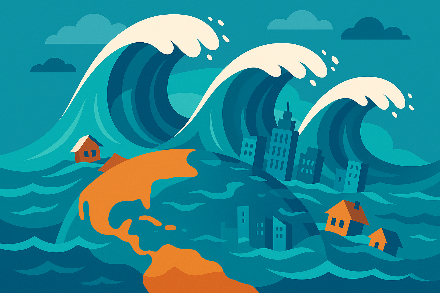 Even more devastating than the winds, the oceans would unleash their own fury. The oceans would also have the same velocity as the rotation, but being much heavier and having more kinetic energy would not just cause floods, but would create waves kilometers high, reducing not just shores but inland cities to ruins. This would create new islands and inland seas with problems of their own.